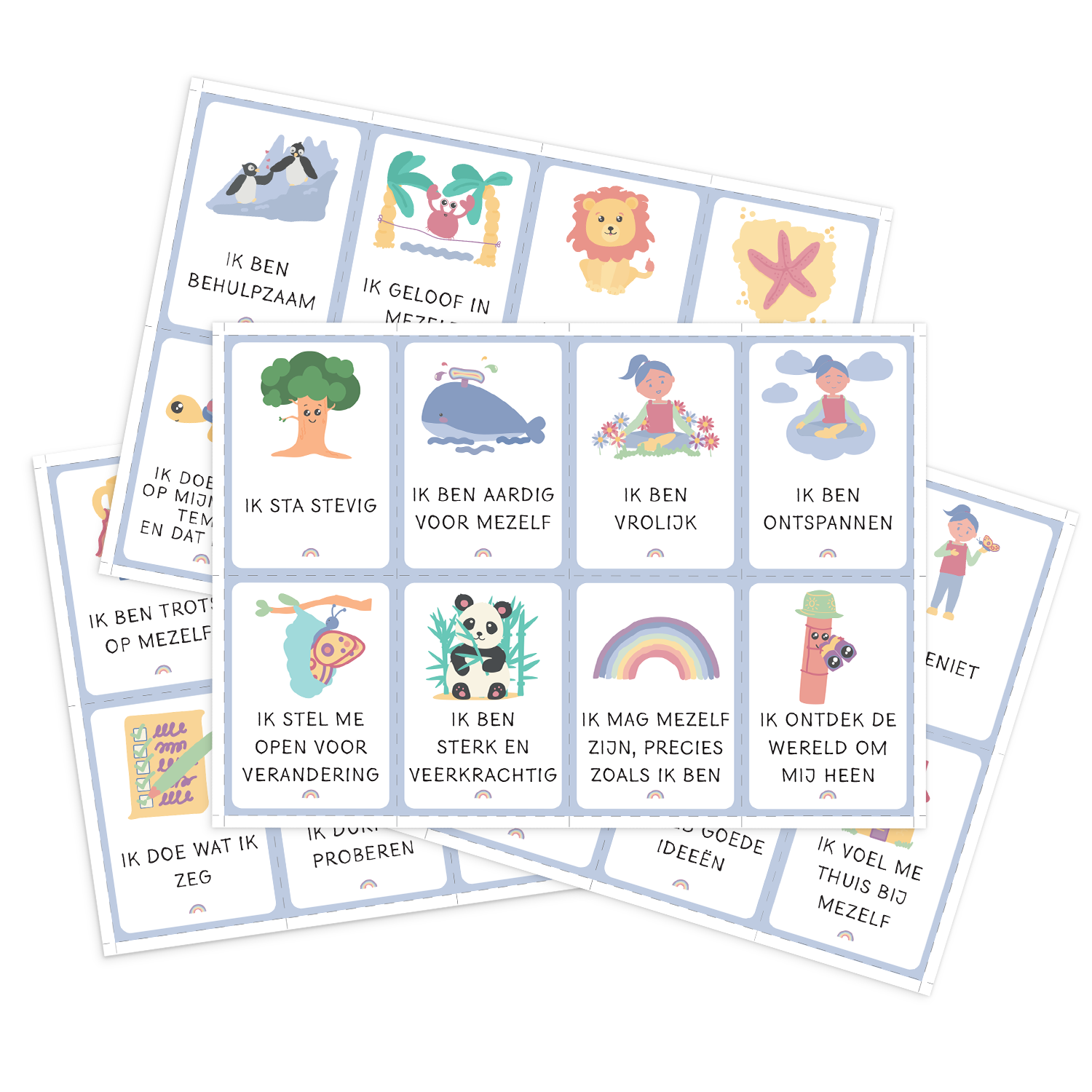 - 32 kleurrijke printable affirmatiekaarten