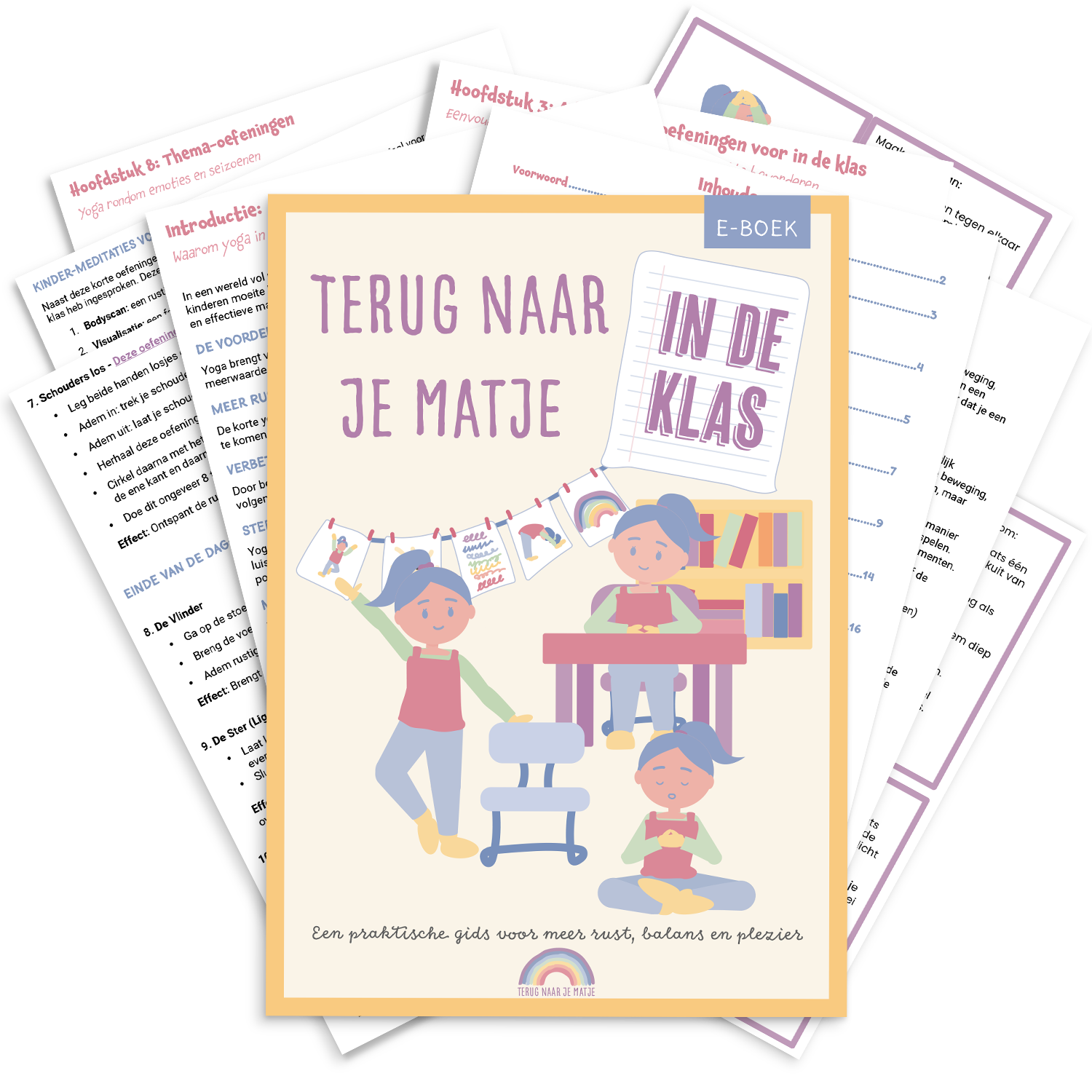 In dit e-boek vind je praktische yoga- en mindfulnessoefeningen die je direct kunt inzetten. Korte bewegingen, ademspelletjes en fijne rustmomenten helpen kinderen om beter te focussen, hun energie te balanceren en met meer plezier te leren.